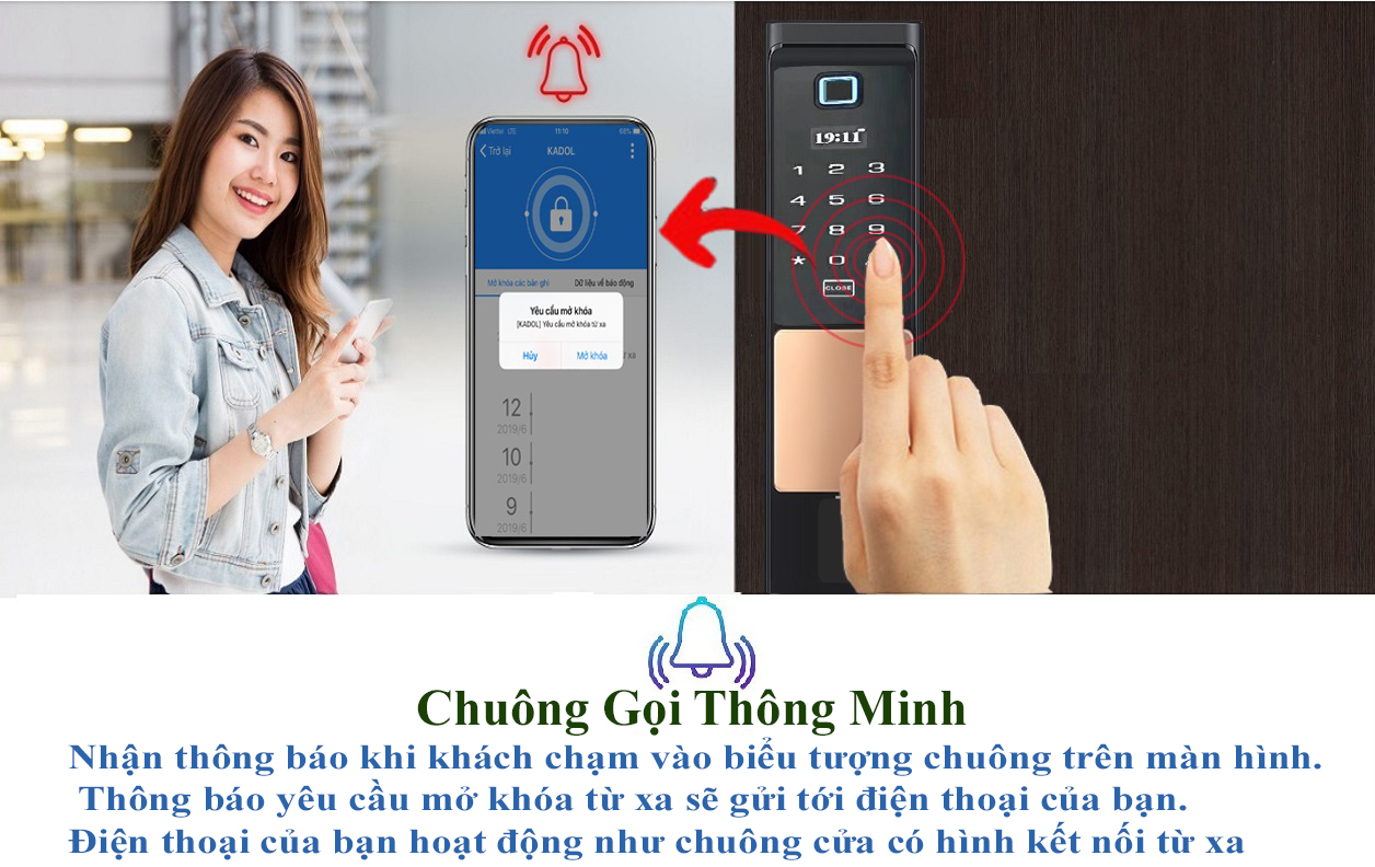 Khóa vân tay mở từ xa là xu thế 2019. Kadol đã là một trong những thương hiệu khóa cửa lớn tại Việt Nam. Người tiêu dùng biết đến sản phẩm của KADOL bởi chất lượng tốt. Và những thiết kế tinh sảo. Không dừng lại ở những dòng khóa dành cho cửa Nhôm; KADOL đã ra mẫu khóa mới tích hợp nhiều tính năng mở khóa xu thế 4.0 là mẫu K768. Khóa vân tay mở từ xa bằng điện thoại qua wife và 4G. Đây là sản phẩm ứng dụng công nghệ IOT và tính hữu dụng của nó như: Mở khóa cho người thân khi bạn vắng nhà, quản lý thời gian mở của của các thành viên, kết nối với hệ thông nhà thông minh,….