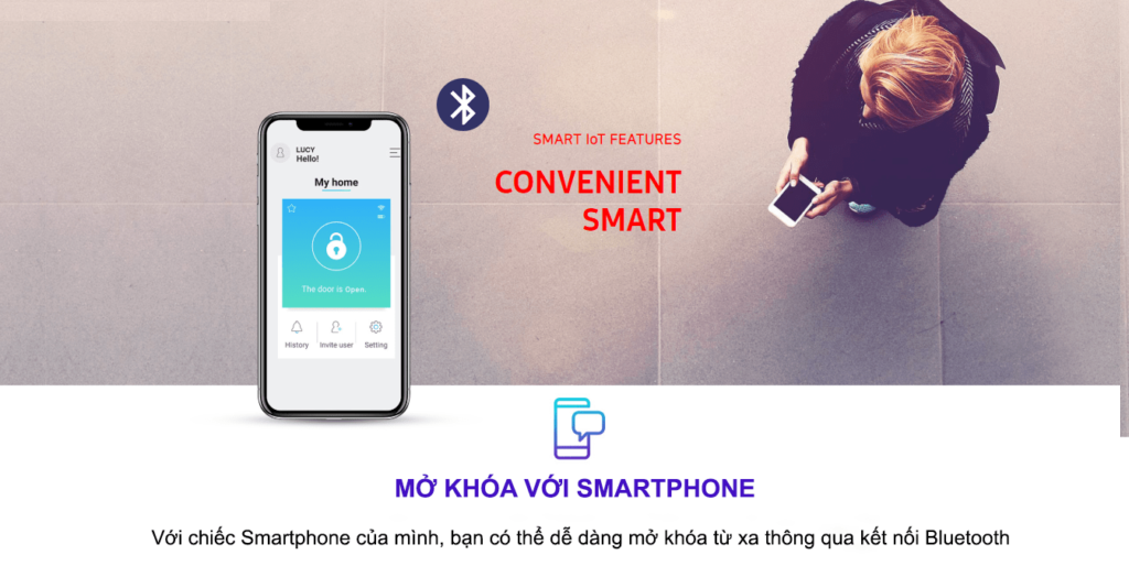 Khóa Samsung SHP-DP738 là khóa vân tay, thẻ từ, mật khẩu, chìa cơ, mở từ xa qua điện thoại.